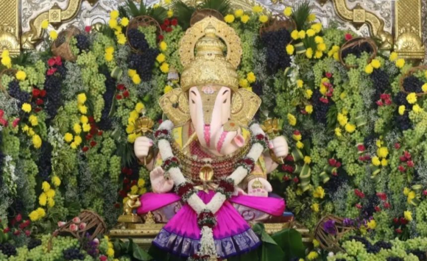 Dagdusheth Halwai Ganpati : पुणे : काळी, हिरवी आणि लाल टपोऱ्या द्राक्षांनी श्रीमंत दगडूशेठ हलवाई गणपती मंदिरातील गाभारा व सभामंडप…